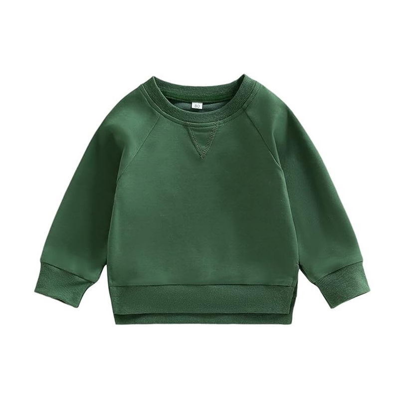 A alfaiataria normal, mangas compridas e colares redondos fornecem um ajuste solto para que as crianças possam se mover livremente sem se sentirem restringidas. Em uma manhã movimentada, o estilo do pulôver facilita o vestuário, tanto prático quanto amigável. Esse design torna a mudança de roupa menos estressante para pais e crianças pequenas, porque não há botões ou zíperes para explorar.